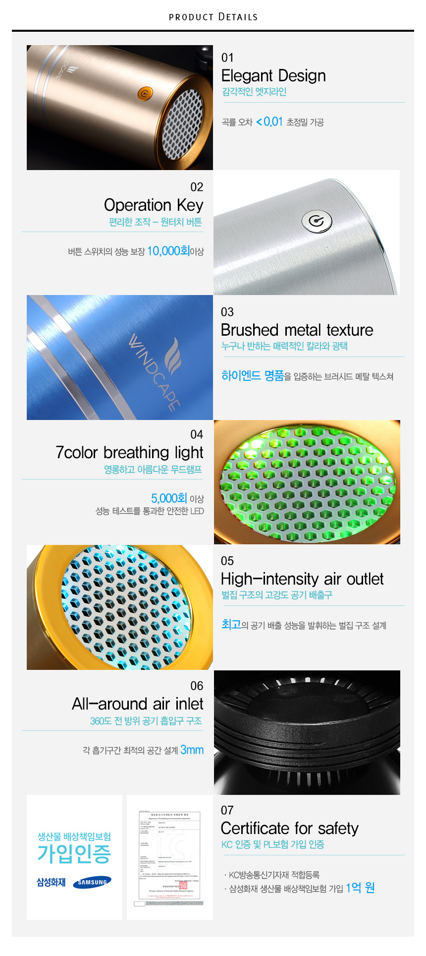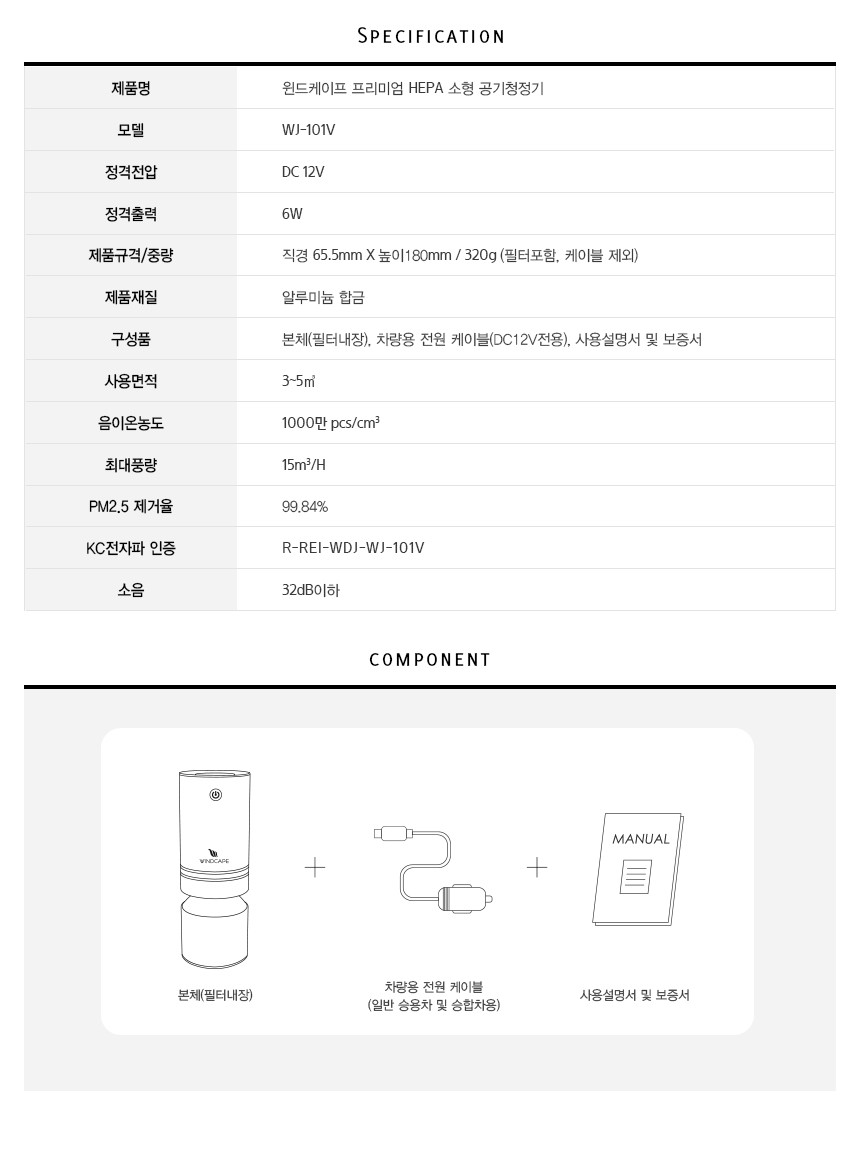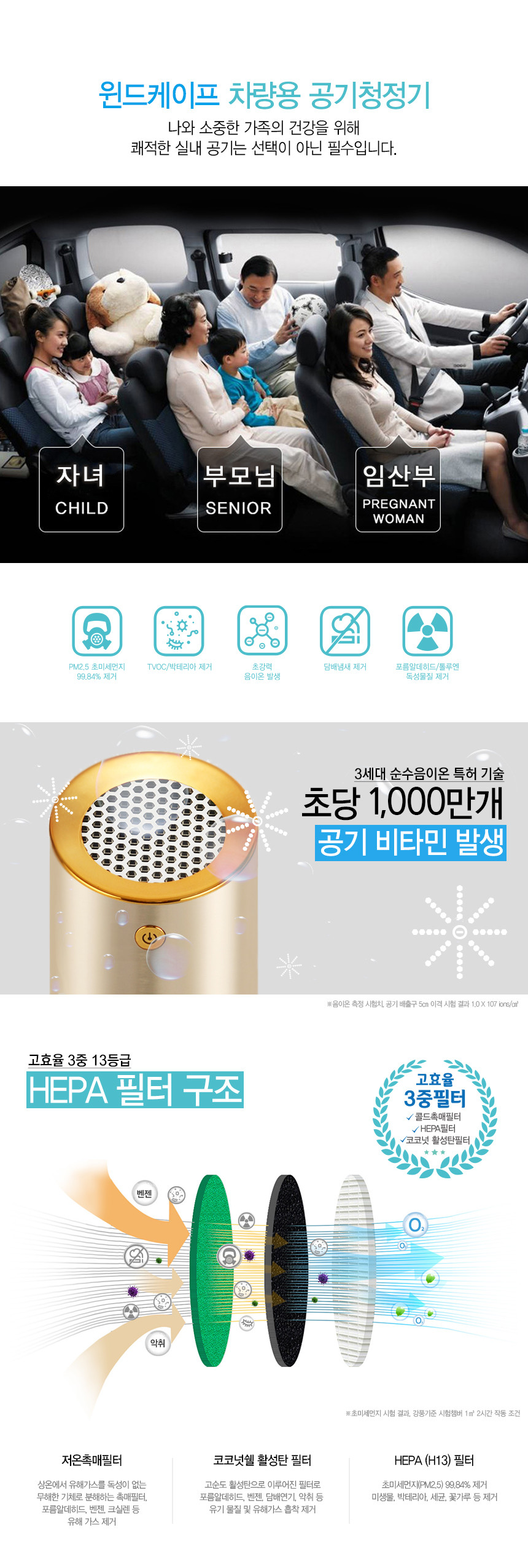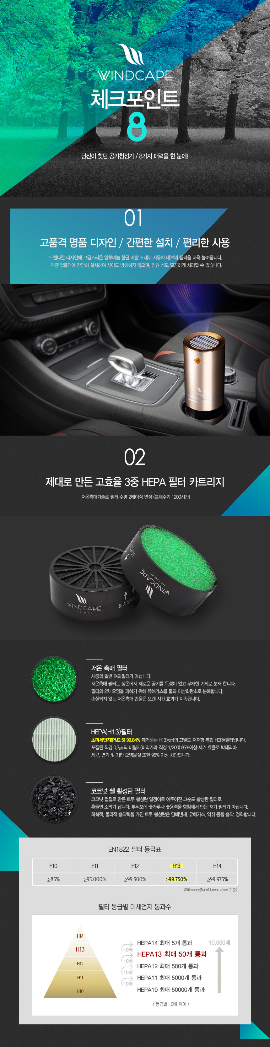윈드케이프 프리미엄 차량용 미니 공기청정기 메탈릭 실버